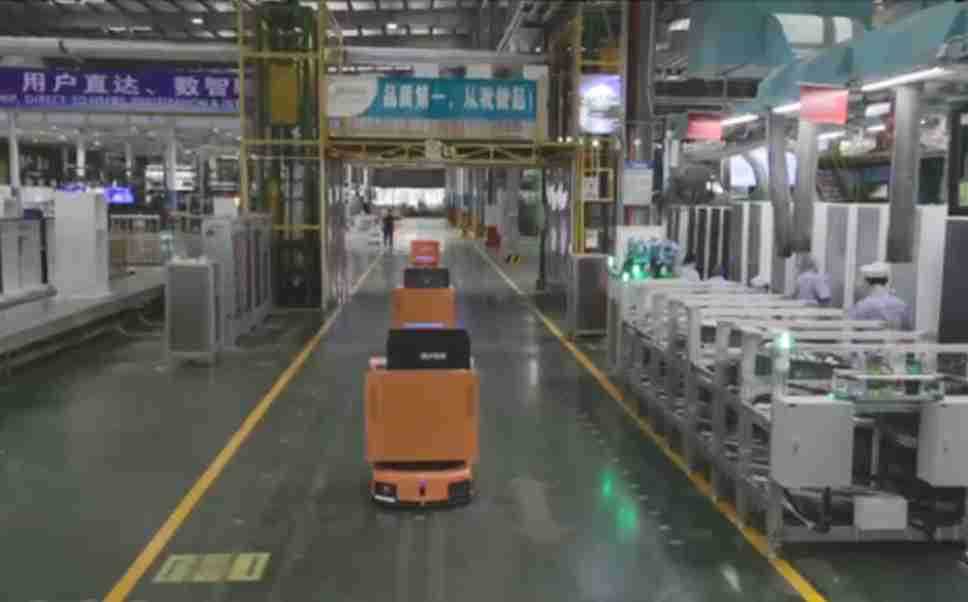 为车载冰箱物流配送打造的智能解决方案,,包含产中物流通过潜伏举升AMR搬运至线边,,产后成品物流智能仓储,,,流程包含产中物流智能齐套入库,,,线边安灯叫料AMR智能配送至线边,,成品入库、、出库,,,,通过无人堆高车机器人,,,智能仓储管理替代人工作业管理,,,,实现更高存储、、、、更高效率、、、、更具柔性化的解决方案。。。